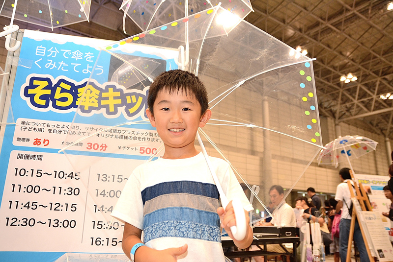 私たちサエラのブースでは、『自分で傘を組み立てよう!そら傘キット』と題し、